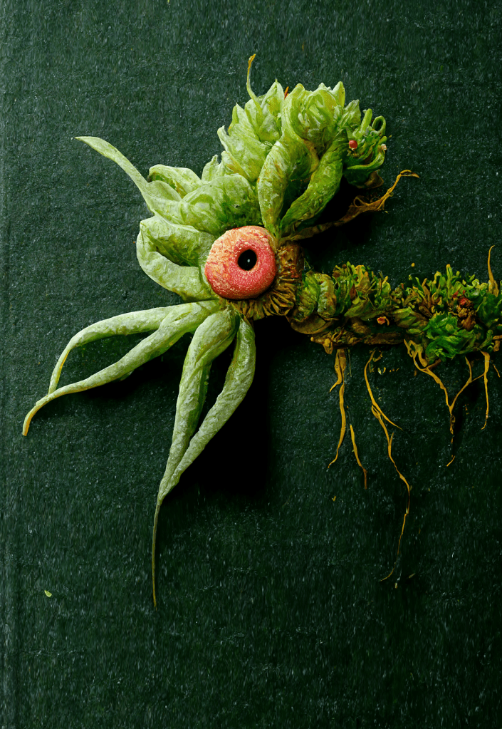 ESTRAFALARIAS es una serie de arte generativo asistida por IA. Una ficción especulativa desde el Plantropoceno que propone otros escenarios posibles, imaginarios simbióticos que podrían inspirar a otro tipo de comunidades y que nos lleva a reconocer las conexiones holísticas que existen entre lo ecológico, lo tecnológico y lo humano.